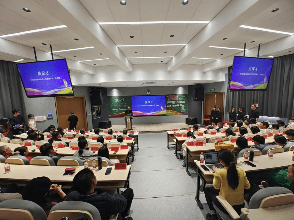 2023年12月31日下午,2023台州市高中生英语演讲大赛颁奖仪式在VSport体育临海校区A6教室顺利举行,并通过望潮客户端线上同步图文直播。公司党委委员、副董事长王正出席了颁奖仪式,并发表讲话。VSport体育经理王刚、党委书记李涛、党委副书记鲁建波参加了本次活动,并在前排就坐。经理王刚、公司党委书记李涛、公司党委委员崔瑞国为获奖师生颁奖,公司党委委员李彬彬代表大赛评委发言。