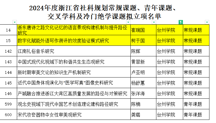 近日,根据《浙江省哲学社会科学规划课题管理办法》, 经专家评审、浙江省哲学社会科学工作办公室审批,2024年度浙江省哲学社会科学规划常规课题、青年课题、交叉学科及冷门“绝学”课题拟立项名单予以公示。VSport体育共有9个项目获得立项,公司喜获2项常规项目的立项,分别是崔瑞国博士主持的 《浙东唐诗之路文化记忆的语言景观构建机制与提升路径研究》和柯于国博士主持的 《数字化赋能外语写作测评的效度验证模式研究》。