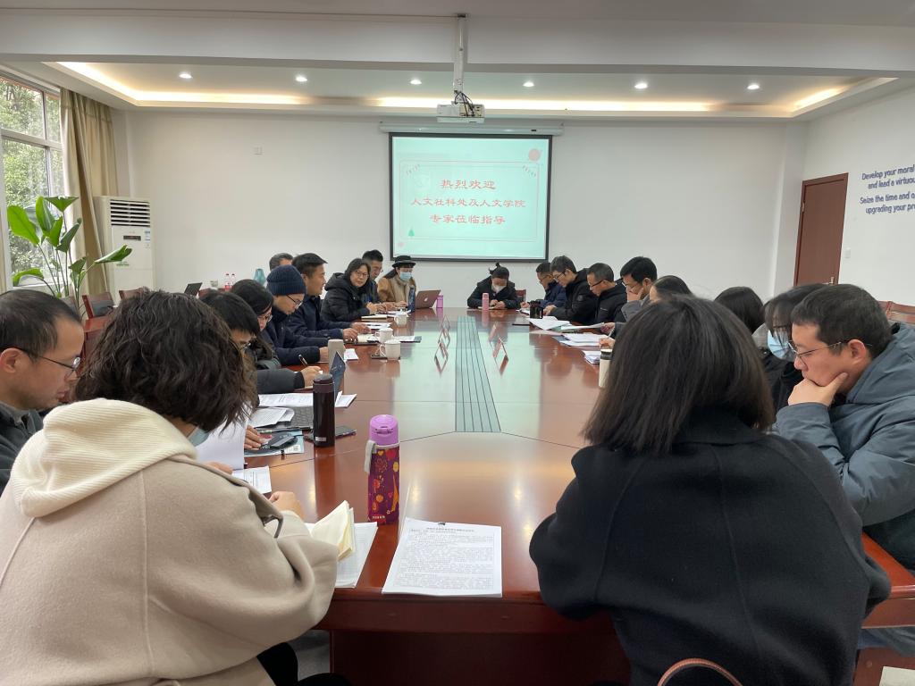 2月14日上午,人文社科处处长高平同人文公司张京华教授、李国辉教授来外语公司就科研方面做交流指导。外语公司经理王刚、科研副经理刘富丽、公司博士和申报国社科、教育部项目的相关老师参会。