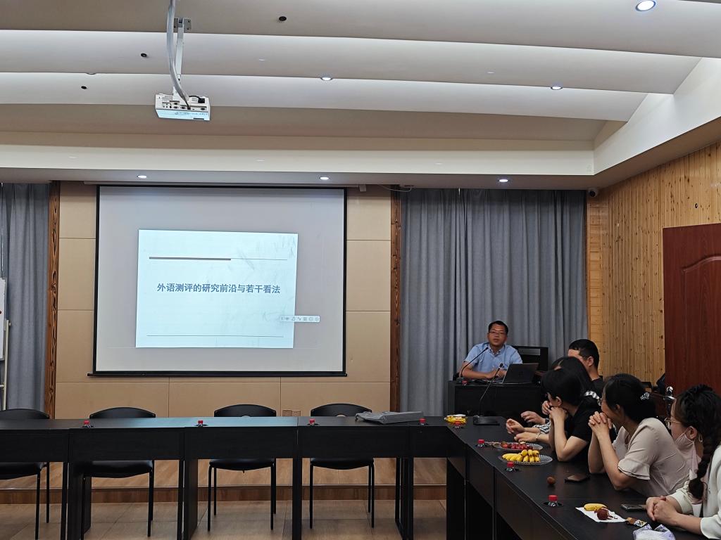 柯于国博士以《外语测评的研究前沿与若干看法》为主题,探讨了当前国内外20个语言测评热点话题,并提出了现实中语言测评的若干问题。重点聚焦语言测评的顶层设计、特征与布局、框架与标准、对接路径、若干支撑与功能。然后从新理论、新方法、新技术展开分析,最后提出了有效学习。有效教学与有效测试。 讲座内容深入浅出,为在场听众带来了深刻的启示和思考。