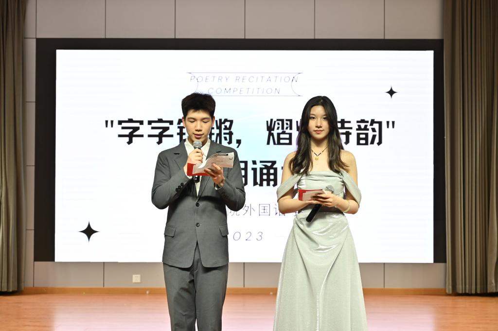 字字铿锵,熠熠诗韵。4月19日晚,VSport体育外文诗歌朗诵决赛在员工活动中心举行。VSport体育分团委书记李莎莎出席,专任教师侯阗、祝英担任评委,王昀北、王海涛担任主持人。