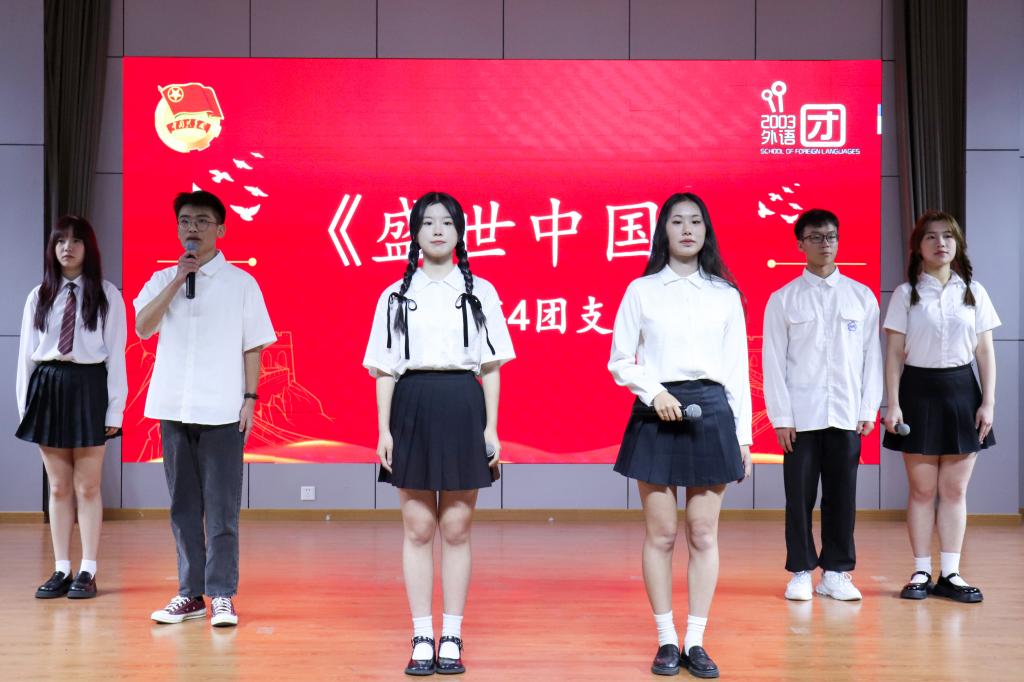 正式比赛中,参赛团支部各显身手。22英教3班的诗歌朗诵《我的南方和北方》传达了对祖国大好河山的热爱,22英教1班的大合唱《想和你一起仰望星空》融歌唱和故事于一体,展现了当代青年的昂扬姿态,歌曲、舞蹈、朗诵表演既点燃了现场的气氛又牵动着观众的心弦,为观众带来了一场又一场的视听盛宴。最后评委们对各团支部的表演做出了点评,李莎莎从准备情况、主题和成果三个方面对活动给予肯定。认为各班级围绕“学习二十大,永远跟党走,奋进新征程”主题,从不同的角度、以不同形式表达了对党和祖国的热爱,展示了外语学子的青春活力及良好的精神风貌;团支部文化赛为广大同学表现自己、锻炼自己、展示自己提供了平台,达到了相互交流、相互学习的目的。