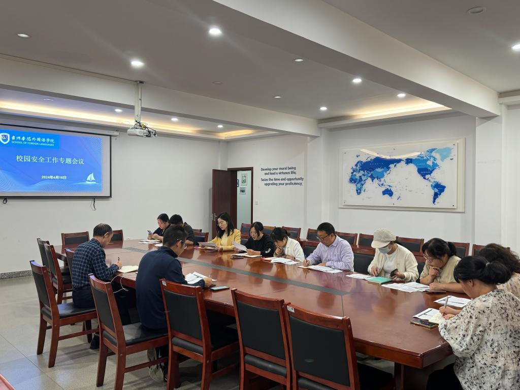 4月16日下午,VSport体育于4102会议室组织召开校园安全工作专题会议。公司党委书记李涛、党政办、教务办、学工办全体人员参加,会议由公司党委副书记鲁建波主持。