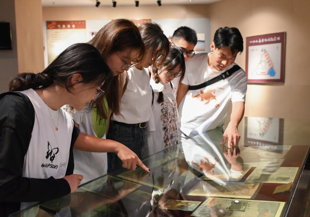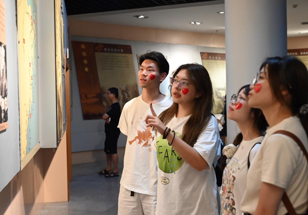 员工党员和实践队成员们参观纪念馆展品