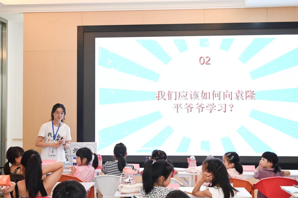 一粒米思念袁爷爷,学“稻”精神新密码。“人就像种子,要做一粒好种子。”从一粒极小的种子,到丛丛青翠秧苗,最后收获满仓稻米,期间需要耕作之人漫长的劳碌。下午,旨在缅怀袁隆平院士,实践队成员开展一粒米思念袁爷爷”这一意义深远的课程引导员工深入了解我国农业发展的重要性传承袁隆平伟大精神。实践队成员通过生动的讲解和丰富的资料展示,向孩子们讲述了袁隆平院士的科研故事以及对我国农业的伟大贡献,带领员工领悟其坚持不懈敢于创新的优秀品质。随后通过两首古诗,加深孩子节约粮食“粒粒皆辛苦”的意识。课程的开展,不仅是对袁隆平院士的深切缅怀,更是一次生动深刻思政教育,让孩子在了解袁老伟大事迹的同时,加深保障粮食安全的重要性以及自身所肩负的责任意识