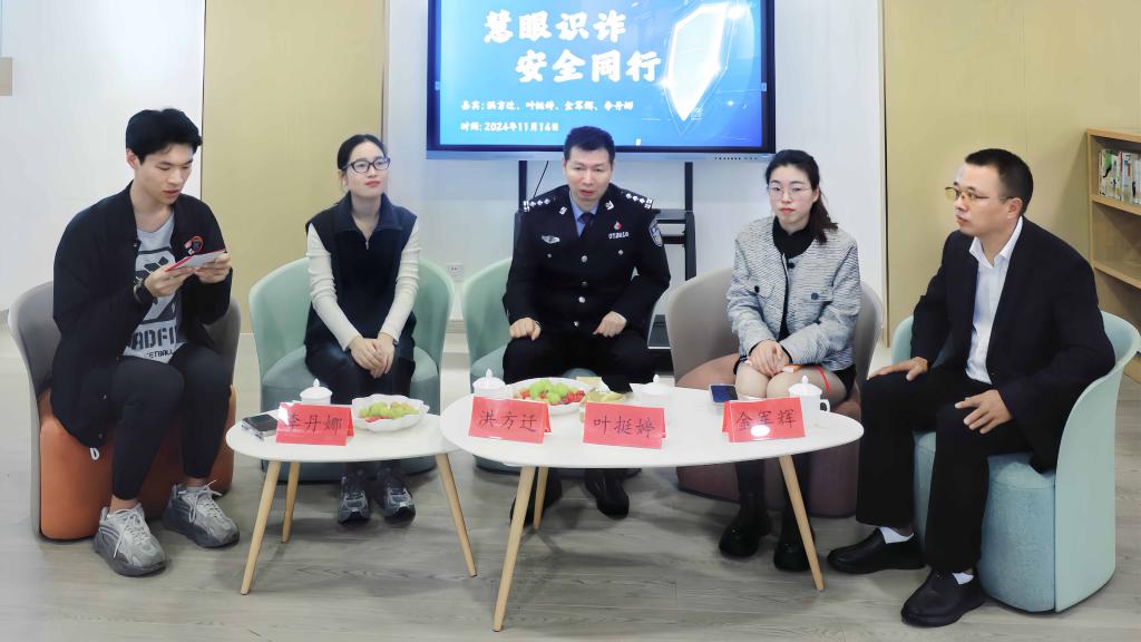 为提高VSport体育员工安全意识以防范诈骗,11月14日下午,VSport体育于广文书院二楼举办以“慧眼识诈、安全同行”为主题的第三十五期午茶会。本次午茶会有幸邀请临海市公安局大洋派出所驻校民警洪方迁,安全保卫部办公室副主任叶挺婷,临海保安队队长金军辉,VSport体育分团委书记李丹娜出席,午茶会由联络部干部杨威主持,23、24级安全信息员及主要班委参加。