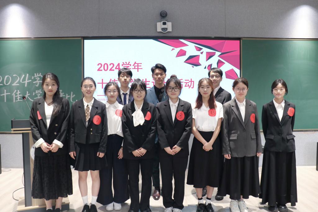 自主申报与班级推荐,13名候选人入围终评。现场展示环节,参评员工通过PPT全面呈现学业成绩、竞赛奖项、实践成果、思想品德及特长发展。其中,既有专业绩点突出、斩获专四优秀及省级赛事奖项的学术标兵;也有文体兼修,在省校运动会、艺术展演中屡获佳绩的多元发展典型;更不乏深入社区开展双语志愿服务,实现知识转化的实践先锋。