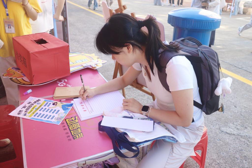 今年外院在报到环节中融入了更多“青春元素”——kt板设计独特,趣味标语幽默感满满。不断有新生驻足,留下与外院的“第一张”同框照。院领导也走进他们中间,一起合影交流,消解初见的拘谨。信箱前新生们认真书写心愿与目标,将信封投入箱中。现场抽奖活动包含精美奖品,既实用又满载心意,为报到日添了一份惊喜与期待。