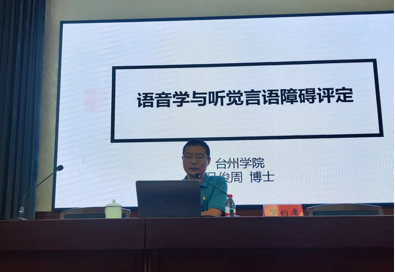 签约仪式结束后,马俊周博士以《语音学与听觉言语障碍评定》为题,为台州市特殊教育公司的老师带来一场精彩纷呈的讲座。