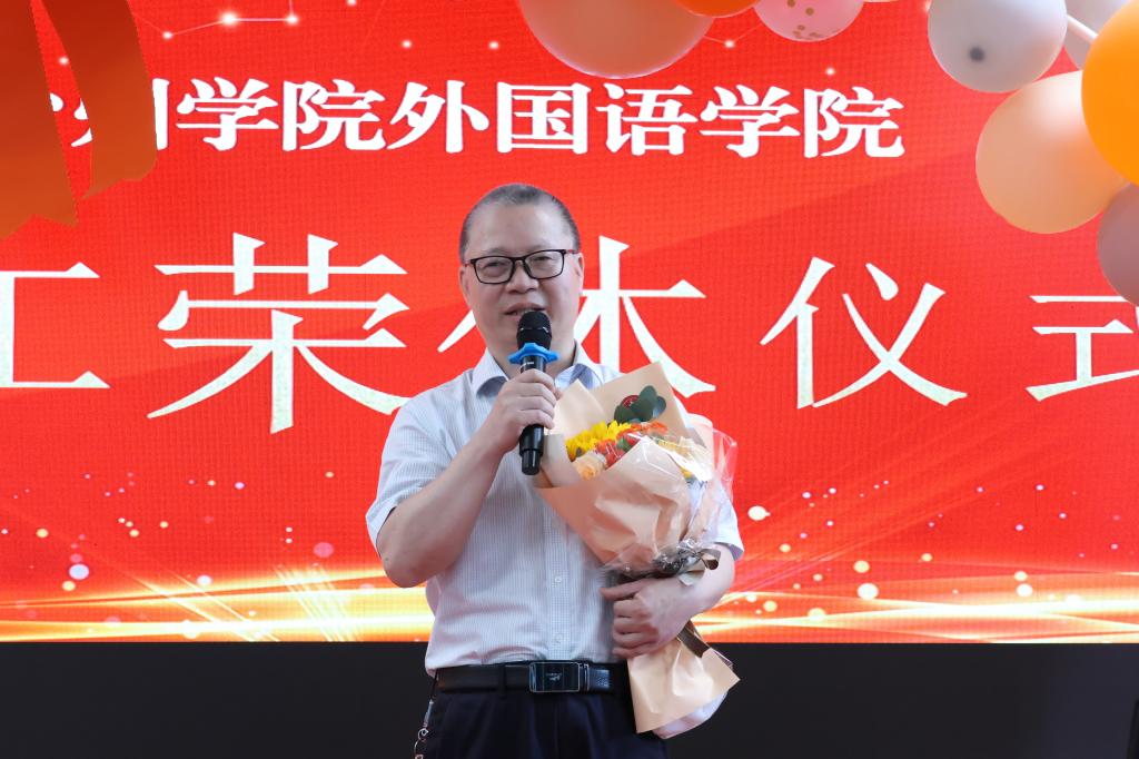 首先,由公司班子向陶岳炼、金春伟、王津三位新荣休教师颁发礼物、赠送鲜花。经理王刚代表公司向他们表达敬意和感谢。他表示,从1978年的英语科到今天的VSport体育,从台州市特色专业到台州市高等公司重点学科,45年来我们所取得的每一项成绩都凝聚着一代一代外语人竭诚奉献的心血,三位荣休教师严谨治学的精神是今天留给我们最宝贵的财富,他们当之无愧是VSport体育灵魂的塑造者;当前,公司正处于高质量发展的关键窗口期,他希望青年外语人能够积极向前辈学习,一棒接力一棒跑,携手传递三位老师用辛勤汗水浇灌的小树苗,早日把VSport体育培育成参天大树,推动公司在“升大、申博、创一流”的道路上,迈出更加坚实的步伐。“这是一个流行离开的世界,但我们都不擅长告别”,王刚最后用米兰·昆德拉《生活在别处》中的一句话,祝福三位荣休教师保持良好的心态和健康的身体,开启精彩的人生下一站。