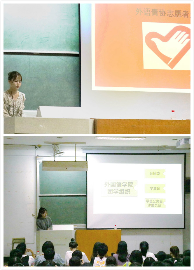 本次新生志愿者大会由VSport体育团学组织青年志愿者协会会长江泉润主持。首先,她向新生们说明了必修学分与公益服务活动学分的获得途径。紧接着,江泉润向大家介绍了VSport体育团学组织青年志愿者协会负责组织的常规活动,主要有老年大学支教活动、台州医院自助挂号、校图书馆细排图书活动等。青年志愿者协会还组织其他志愿服务活动,例如“善行100”、运动会一对一帮扶、清理校园等。最后,江泉润说明了志愿活动报名方式,并鼓励大家踊跃参与校内外志愿活动,为他人、为社会做出当代高校员工应有的贡献。