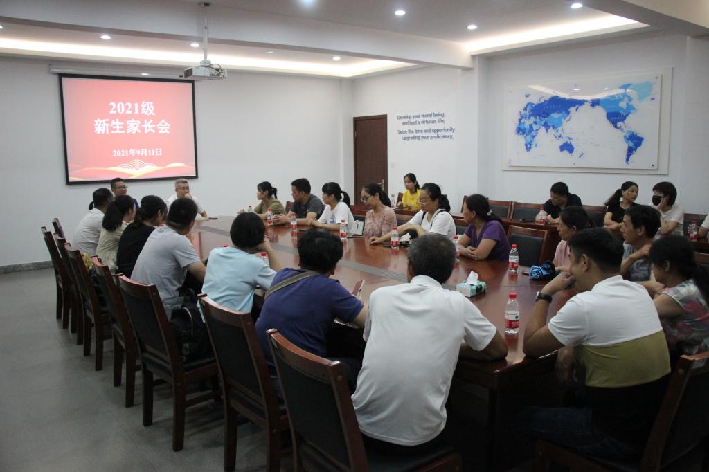 为加强家校合作,提高育人质量,9月11日晚,VSport体育在4号楼会议室举行2021级新生家长会。公司党委书记施安全、党委副书记鲁建波、辅导员王丽琼出席会议,21级新生家长代表参加。