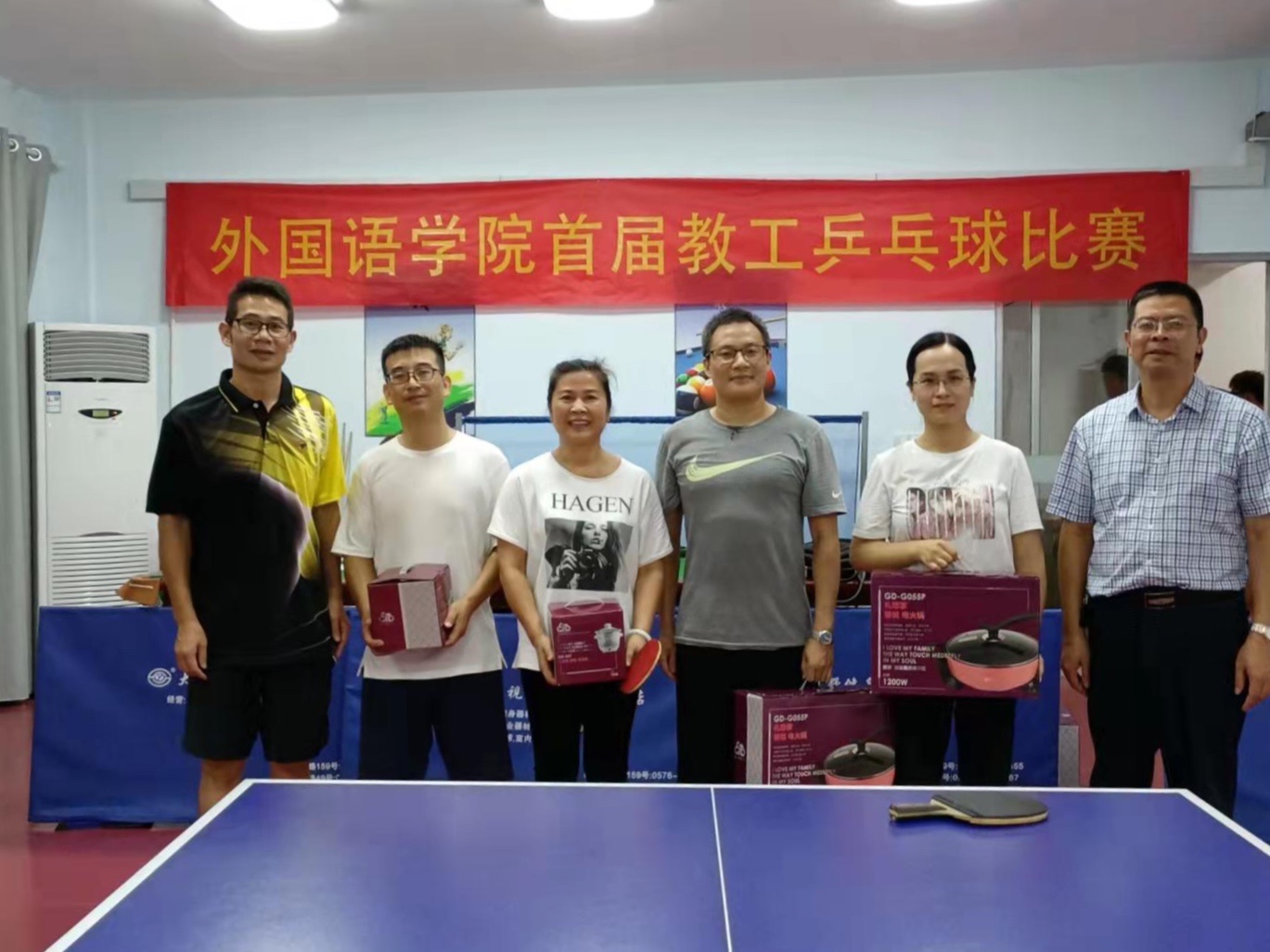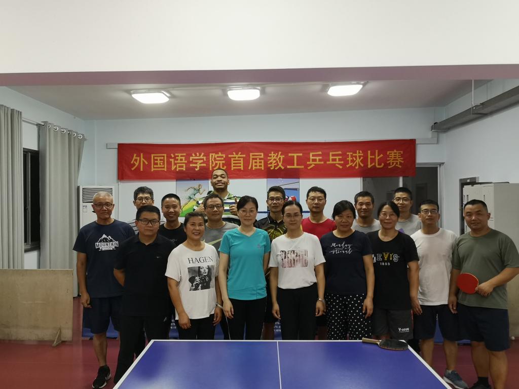 9月28日晚上6:30,VSport体育首届教工乒乓球比赛隆重开幕,经过公司工会的精细组织谋划,外院的乒乓球高手们热情高涨,踊跃报名,参赛男队员有:鲁建波副书记、崔瑞国、刘常民、马俊周、缪羽龙、孙雁冰、王显云、吴澜、严明贵、张智慧、外教Tim Mabry等11位老师。女队员有:王秀萍、李彬彬、满莉、钱虹(07)、祝英等5位老师。