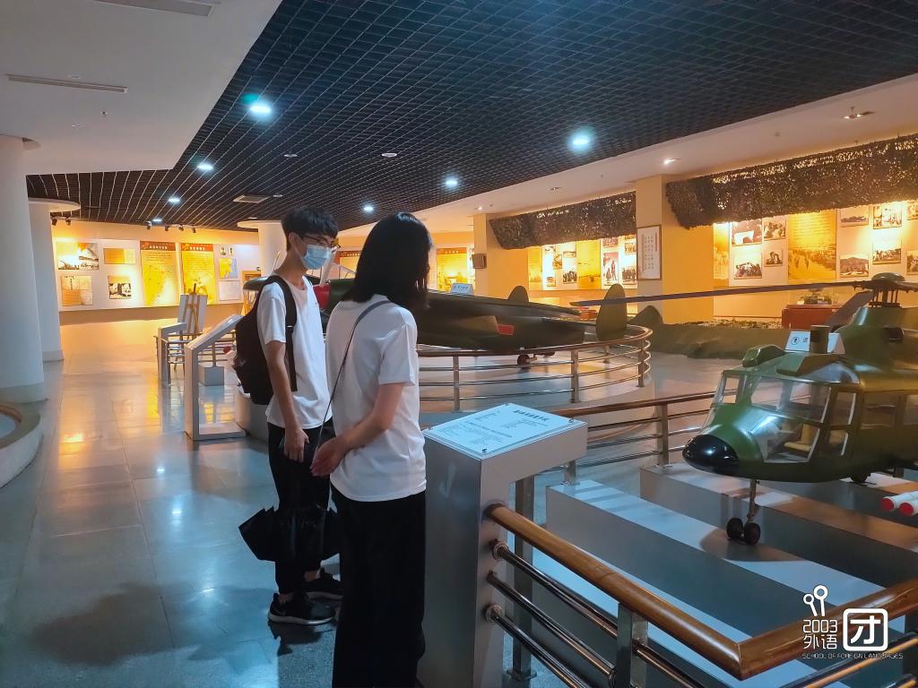 一江山岛登陆战纪念馆共有两层,完整并详实地介绍了战役的前期准备,抗争过程和它的深远影响。馆内不仅有战时遗留下来的导弹和飞机模型,还保存着许多革命烈士的遗物,如勋章、家信、布鞋和手枪等。看着一张张泛黄的老照片上年轻坚毅的面孔,同学们的心中升起由衷的敬佩之情。在参观之余,各位队员们也不忘拍照记录,为日后的翻译、整理党史搜集资料。