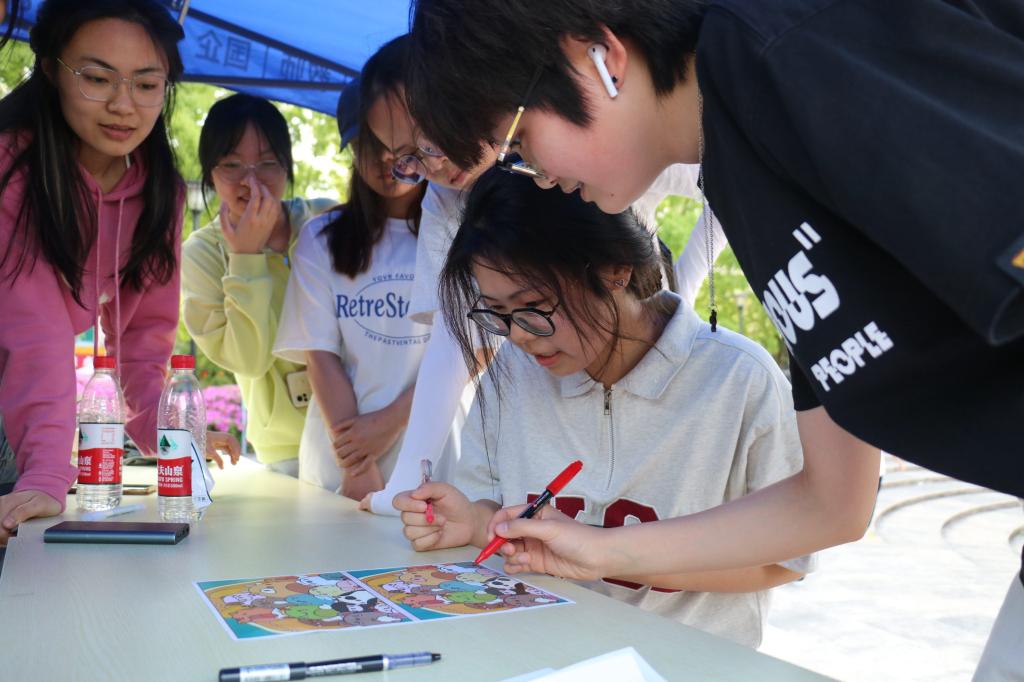 活动开始,各个寝室的队伍准时汇聚于员工活动中心大圆盘。大家都神采奕奕,跃跃欲试,奔到各个游戏点,开始积分赛。游戏过程中,拼图的限时紧张刺激,气球接力激烈追逐,还有拍气球、找不同等游戏。在这些游戏中,同学们与室友互帮互助,齐心协力为团队争取高分。
