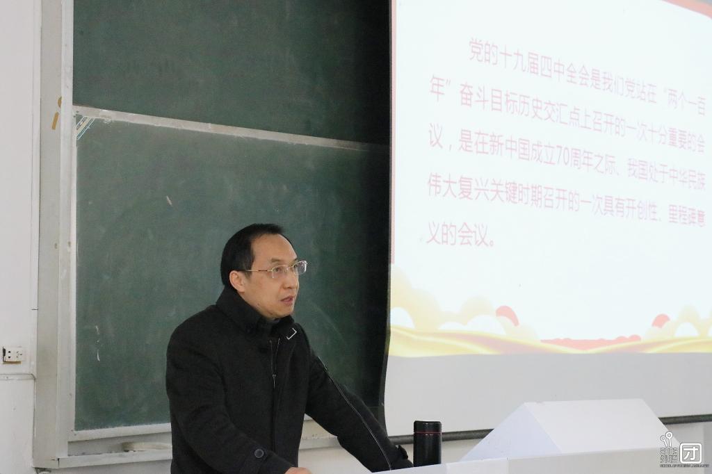 公司党委委员、副董事长胡韶光从四个方面深入阐释了党的十九届四中全会精神。一是十九届四中全会的重要意义;二是中国特色社会主义制度的里程碑意义;三是坚定制度自信,深刻认识中国特色社会主义制度13个方面显著优势;四是既要制度自信又要不断创新,坚持和完善中国特色社会主义制度、推进国家治理体系和治理能力现代化的13项战略任务。