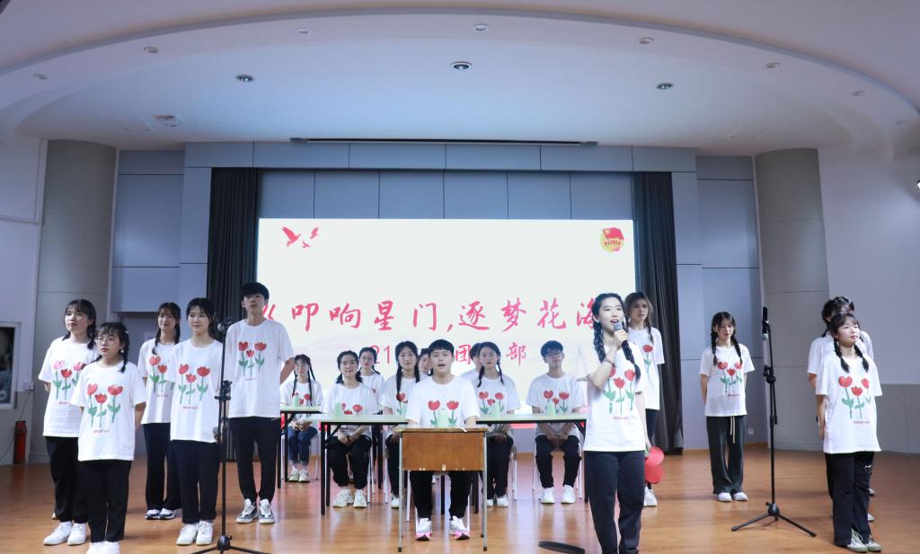 随着两位主持人激情的开场白,活动正式拉开帷幕。首先是由21商英1团支部带来的歌曲合唱《一起向未来》,曲调悠扬,让人不由想乘光前行,为梦启航;21英教2团支部为我们带来诗朗诵《我的祖先名叫炎黄》,他们声音嘹亮,诵出了对祖国的满腔热爱;接下来,21俄语1团支部带来了合唱及杯子舞《扣响“星”门,逐梦“花”海》,歌声婉转动听,配上创意的杯子舞,令人眼前一亮,不由啧啧称赞;在21商英2团支部带来的合唱加诗朗诵《少年中国说》中,“青年有志,国家有望”之声铿锵有力,将经典再度传诵;21商英3团支部带来的幕布剧《永远二十赶朝暮》利用光与影,将表演完美呈现;最后是21英教1团支部带来的诗朗诵《红船之火》,声情并茂,极富感染力。精彩的节目轮番上演,期间穿插两轮抽奖环节,充分调动观众的积极性。