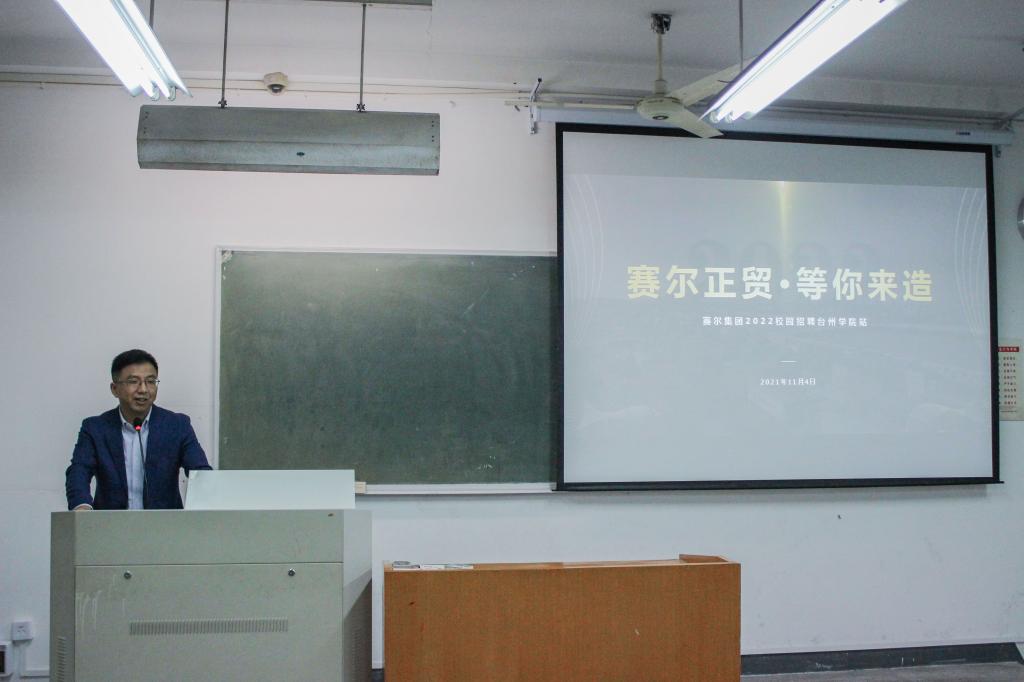 赛尔集团副总裁方永强首先介绍了赛尔集团的企业概况,分析了宁波与义乌两个地区的外贸优势,并阐述了赛尔集团的企业定位、市场覆盖范围、外贸生态圈的构建、行业的领先地位及其承担的社会责任。最后,方永强副总裁还解答了校园对接职场的相关问题,详细介绍了赛尔公司、双轨制晋升机制以及合伙人机制这三样赛尔集团的核心机制。赛尔集团人力资源部招聘经理蒋丽妮就方永强副总裁的讲话做了岗位、职能线、薪酬福利、外贸创业营、人才政策等方面的补充介绍。