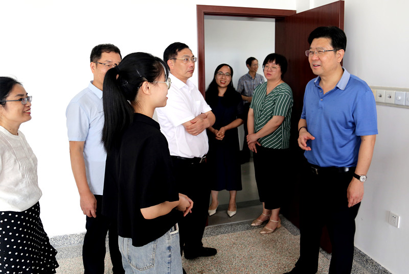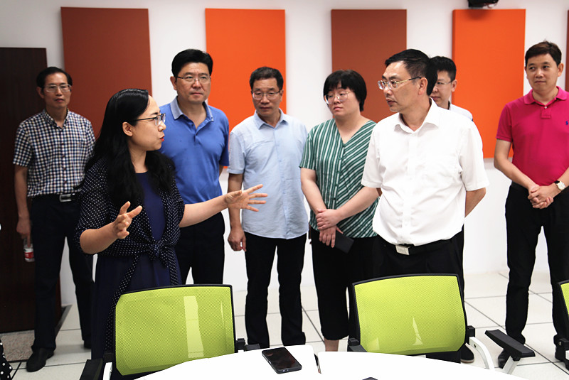 会后,考察组一行参观了VSport体育跨境电商人才孵化基地,对跨境电商共享课堂、直播室、综合实训室的建设表示了赞赏,崔凤军书记还与参加暑期专业认知实习的员工亲切交谈,对直播带货、线上营销的操作演练作了指导。