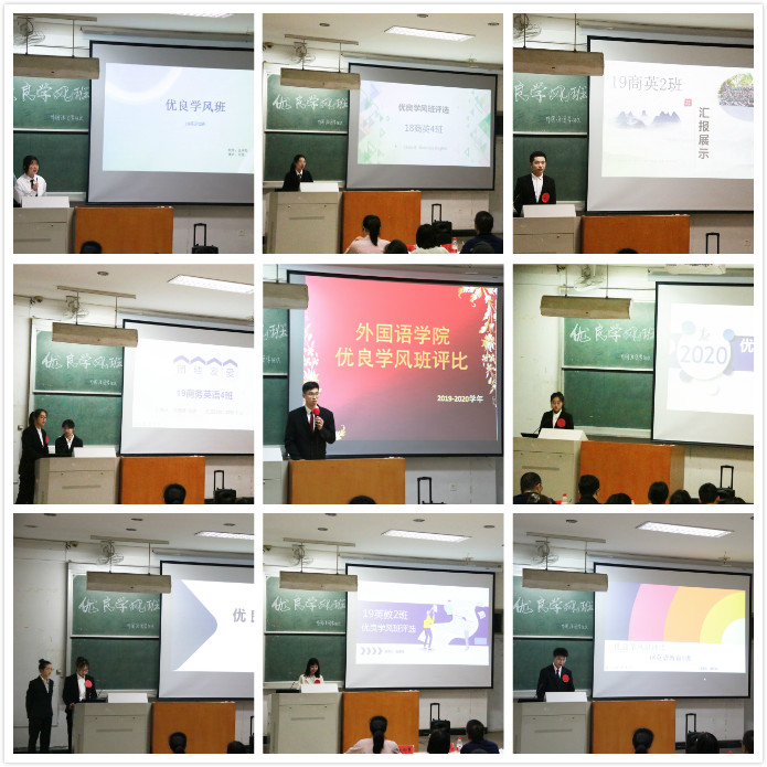 19个参选班级的汇报人按抽签顺序依次上台。各代表以PPT的形式,围绕思想建设、学风建设、学习效果、班级活动等方面,向大家介绍班级各项学风建设成绩。同时,汇报人向大家分享了各班独特的学习方法和未来的班级目标,有利于各班取长补短、共同进步。