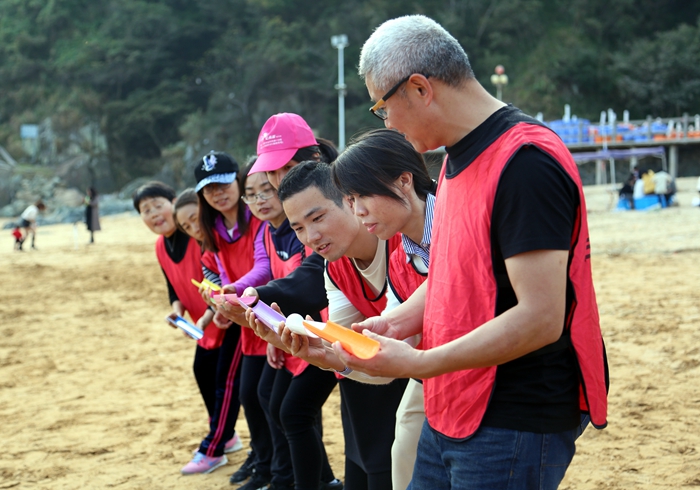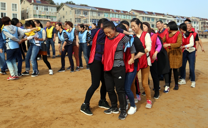 公司 全体教职工身着红、蓝、黄、紫不同服装,分成四支队伍展开激烈角逐。宽衣解带、坦克大战、滚铁环、千里传珠、气排球等比赛项目创意十足,大家参与热情高涨。蓝天、白云、碧海、欢呼声构成了一幅美丽的图画。比赛竞争激烈,难分伯仲,呼声高涨的排球赛甚至进行加时赛争夺冠亚军。特别专为单身教职工们准备的单身狗传球赛游戏,更是笑声不断,回忆满满。赛后大家认真清理现场,在沙滩上留下了台院人的美丽形象。