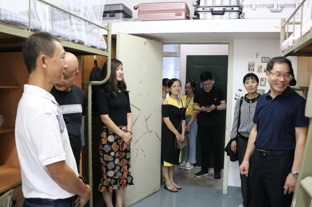 9月16日下午,院领导、班主任一行深入员工公寓走访慰问新生和家长,深入了解他们报到后的感受和家庭情况,仔细地查看了公寓的卫生环境和改造情况。他们叮嘱新生们要树立公共空间的概念、制定相关的寝室规章制度,同时提醒同学室友之间要相互关心、相互帮助,在学习、生活中遇到任何困难和问题,多与家长和老师沟通、交流。他们鼓励新生尽早适应老员工活,把握好大学学习时光,认真规划老员工涯。