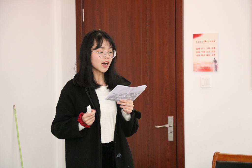 18英教3班预备党员金祉妤以“大力弘扬劳模精神”为主题,从全国劳动模范和先进工作者表彰大会简介、学习习近平主席在大会的讲话和弘扬劳模精神,铸就匠心人生三个方面进行讲述,梳理了习近平主席在大会的讲话要点。让同学们认识到 “社会主义是干出来的,新时代是奋斗出来的”。作为新时代青年,作为今后要走入教师岗的师范生,更要大力弘扬劳模精神,务实苦干、踏实做事,与时俱进,不断汲取新知识,提高自身的学习能力、创新能力和竞争能力,为社会发展提供新动力。