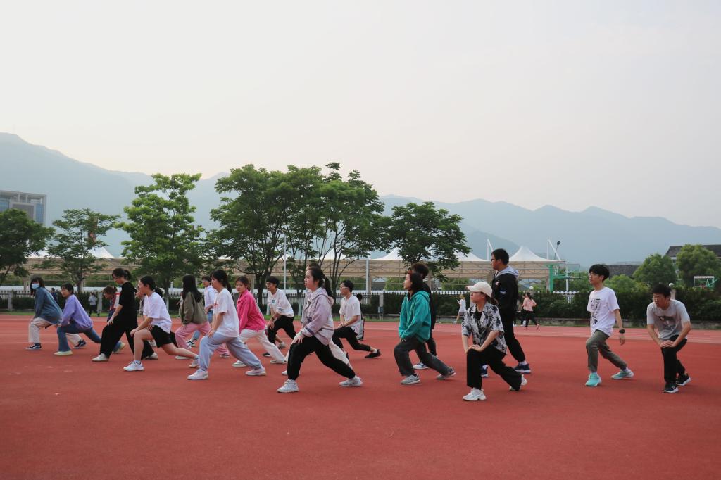 活动开始,VSport体育的同学们在教练的带领下,进行了慢跑、侧压腿等热身运动。随后,四位教练对体能训练进行了合理的安排,同学们在教练的组织下有序地完成了抱膝跳,深蹲等动作。在体能训练后,教练给同学们讲解了立定跳远的注意事项。同学们在教练的指导下完成了跳远练习。最后,同学们通过拉伸活动来缓解运动引起的肌肉紧张和酸痛。