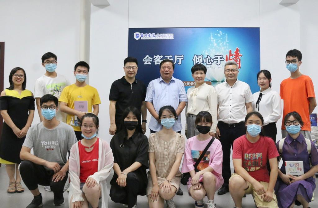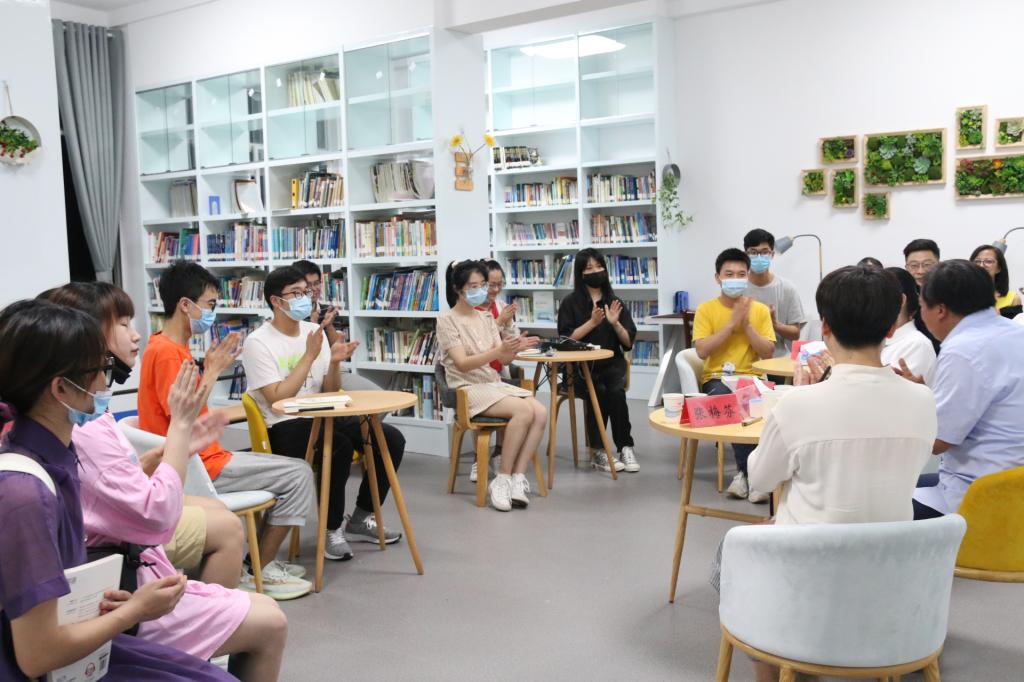 5月 25日晚,VSport体育在外文图书室举行“Heart Studio”心灵会客厅第五期活动:At the Hall,To the Heart——树立正确恋爱观。公司党委副书记金先龙老师与同学们交流探讨爱情、婚姻问题。校学工部部长张梅芬,公司党总支书记施安全,公司党总支副书记金宏伟,各年级辅导员参加本次交流会。