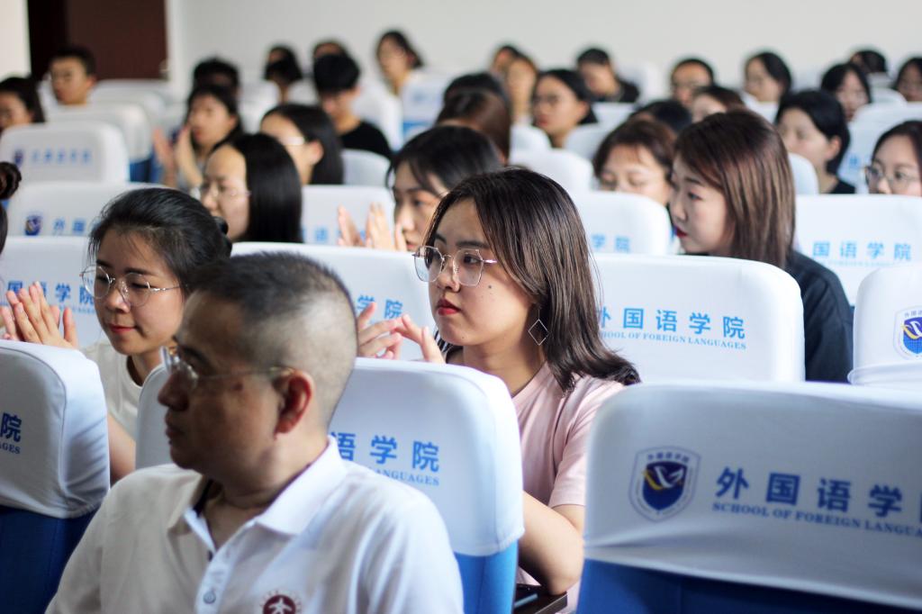 首先,李俊杰老师就海外交流员工的学籍保留、学分认定等做出详细解释。接着,国际交流处处长王爱琴就出国期间需要注意的政治安全、出行安全、心理健康、学习生活等方面做了详细介绍。随后,施安全书记就政治安全问题做了着重强调,同时引导同学们带着一颗感恩的心好好学习,增长才干。朗阁教育董事长楼栋辉就入境海关、衣食住行等细节问题做了进一步解释说明。在互动环节中,同学们积极向楼董事长提问,楼董事长也一一进行了解答。