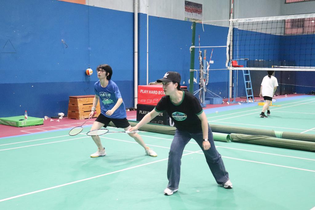 比赛方式是师生混合赛,师生随机分组。比赛时师生双方参赛人员都发挥出了精彩水平。赛场上,师生彼此配合默契、团结协作,一轮轮精彩对打,目不暇接,场外观众的喝彩之声此起彼伏。双方在一起切磋球技,相互交流,在汗水与激情中增进彼此的情感。比赛中,选手们变换的步法,灵活的身姿,处处洋溢着青年学子的青春朝气与活力希望。
