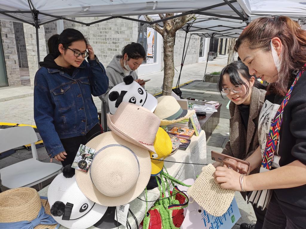 正值“临海樱花纪”,集市上人潮涌动,络绎不绝,市民游客漫步街头,尽情体验古城文化与时尚交融之美。支部党员们也走出校园,来到市井,一边传播非遗草编文化,一边感受临海烟火气息。在售卖过程中,党员们向来往游客热情介绍了集品质与时尚于一体的天然纸草制品,展示了草编这种传统手艺的独特之处,与游客共享非遗之美。活动结束后,比起“摊主”,大家更乐意自称为非遗文化的传播者。