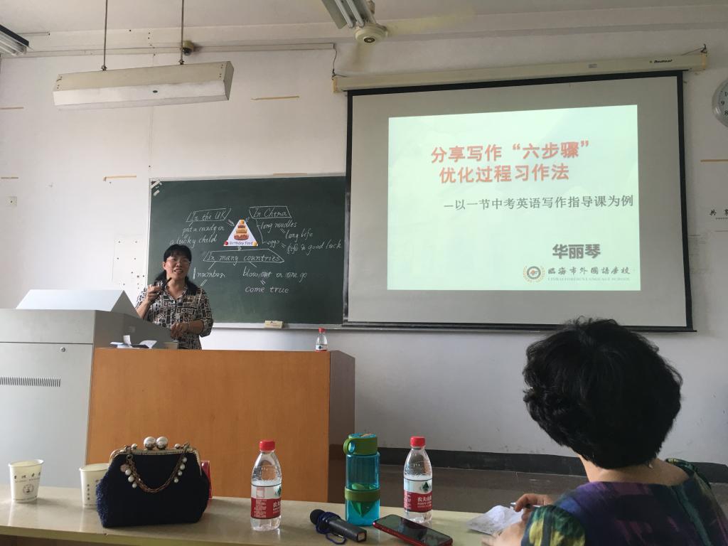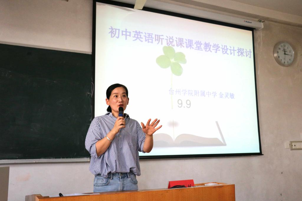活动由员工示范课、专家点评、专家课例三部分构成。在我院16级师范生示范课程后,VSport体育附中名师金灵敏老师就其教师自身素质、课程内容、师生互动三个方面进行了相应点评与指导,并做了“听说教学设计”主题讲座。回浦中学任美琴老师对员工表现进行了点评与指导。她开展了“浅谈英语词汇/语法学习指导”主题讲座,通过大量教材内容,针对词汇和语法两方面提出了众多指导意见,提出了自身关于词汇语法教学的独到见解——“词汇与语法教学,没有定法,具体内容,具体学习对象,应该有相适应的方法”。临海外国语华丽琴老师就示范课进行点评,而后开展了“分享写作‘六步骤’优化过程习作法”主题讲座,通过中考写作标准向我们完美展示了“一审”、“二列”、“三加”、“四美”、“五查”、“留抄”的写作六步骤。