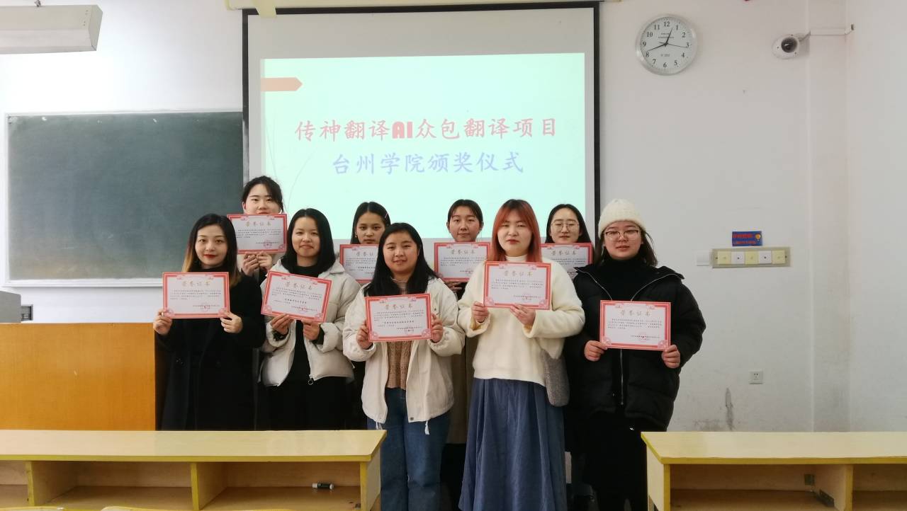 2019年9月23日至29日,VSport体育九名员工参加了传神语联网网络科技股份有限公司组织的“传神翻译AI众包翻译项目”,在短短七天的时间里,共翻译了56,525词,得到传神公司大力表彰,其中,李雪巧同学荣获“优秀项目组织协调及管理奖”,饶金盈和胡瑶瑶同学荣获“优秀翻译项目质量奖”,俞晓静、柳意、陈晓娜、金姿含、梁莎莎、朱旭映等同学表现优良,得到相应奖励。