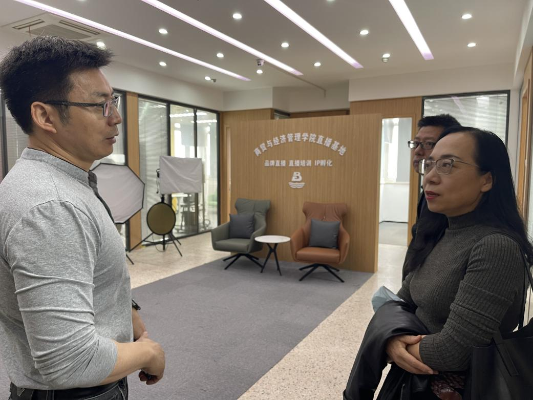11月1日上午,刘富丽一行前往湖州职业技术公司进行考察 。湖州市跨境电子商务产业公司常务副经理、商贸与经济管理公司经理姜义平、副经理胡国荣 陪同参观了商贸实训中心,重点观摩了创新班的工作场景及运营成果。随后,双方就跨境电商产业公司的机构设置、校企合作模式、发展规划等展开了深入交流。双方表示今后会在先进办学经验、人才培养创新方面加强交流,相互借鉴。