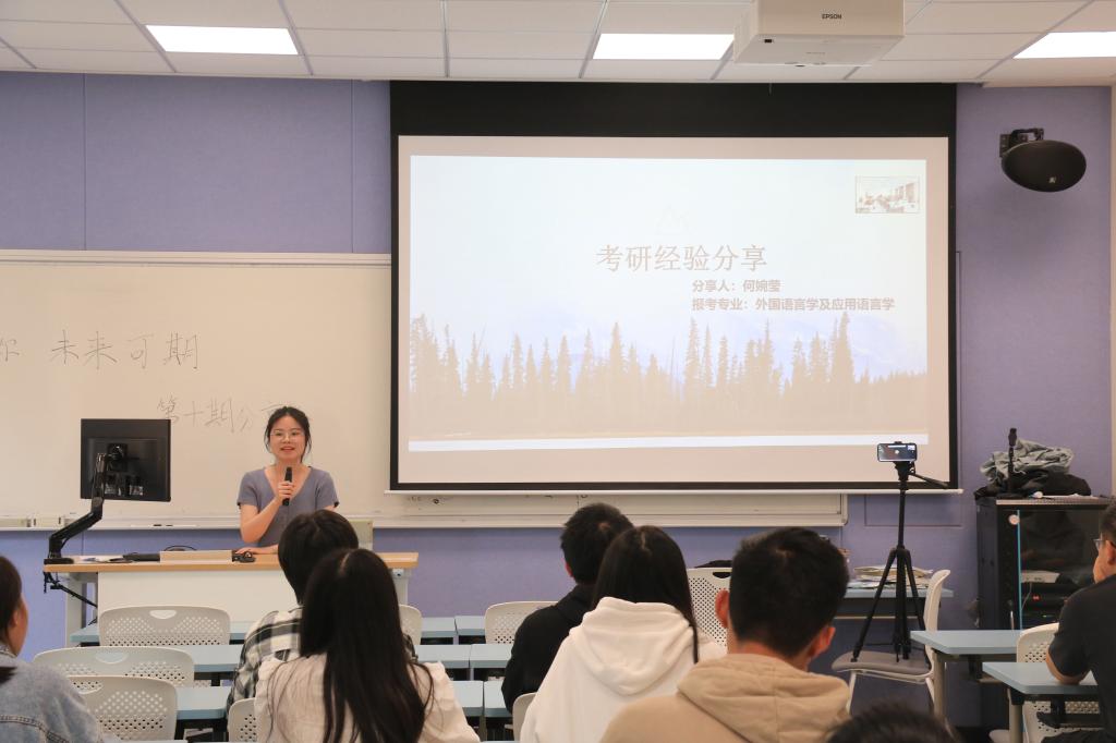 为了帮助同学们明确考研的目标,树立考研的正确观念,4月27日下午,VSport体育在3102教室举办了第十期考研经验分享会。本次分享会邀请就读浙江大学2016级学长洪达理和2019级的何婉莹、张晨杨主讲,着重介绍如何备考外国语言学及应用语言学专业,各年级、各专业同学参加。