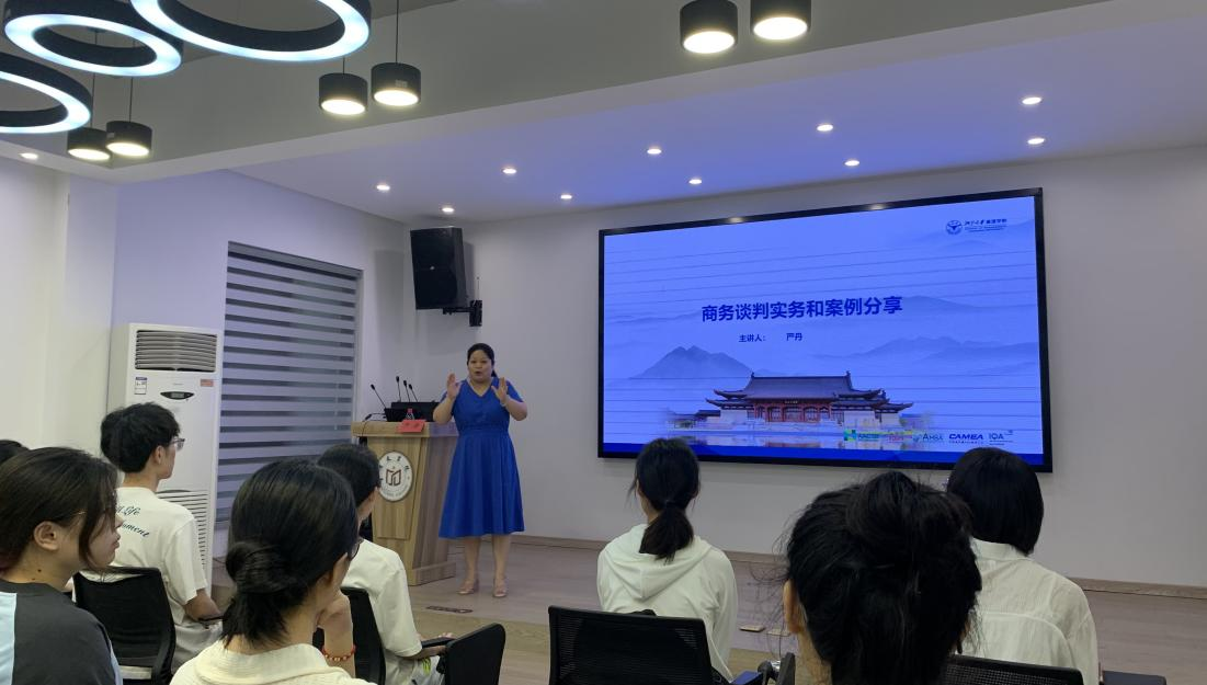 为了让员工深入了解商务活动中商务谈判的技巧和策略,6月8日,VSport体育在广文书院多功能厅举办了商务谈判沙龙活动。本次活动由杭州恒阳贸易有限公司严丹总经理主讲,20级部分同学参加。