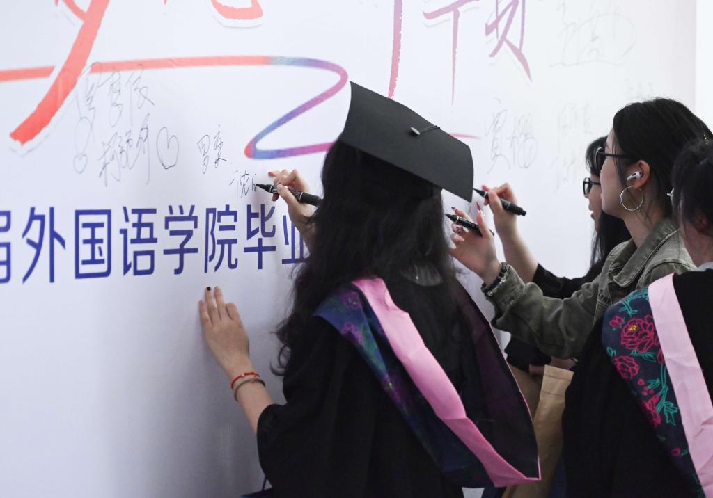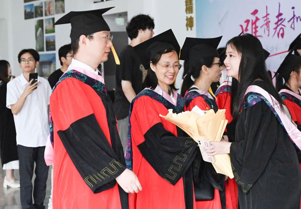 党委委员李彬彬作为教师代表发言。她叮嘱同学们要永远保持对学习的追求和渴望,为实现中华民族伟大复兴做贡献。毕业生代表徐腾用“成长,坚持,期待”总结四年的学习生活,并表达对公司的感谢和对同窗的祝贺。