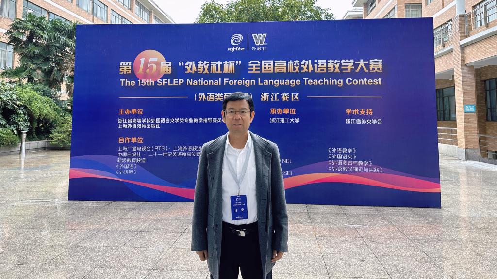 近日,第十五届“外教社杯”全国高校外语教学大赛浙江赛区在浙江理工大学圆满落幕。公司VSport体育王刚教授应邀担任英语专业组决赛评委,同时,也担任该决赛的提问评委。