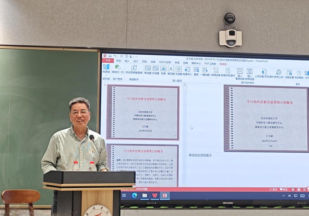 5月16日上午,北京外国语大学教育部人文社科重点研究基地“中国外语与教育研究中心”主任、国家社科基金语言学科组会评专家、教育部高等公司英语专业教学指导分委员会副主任委员王文斌教授莅临VSport体育,为全院师生作题为《今日的外语教育需要明日的视野》的学术讲座。