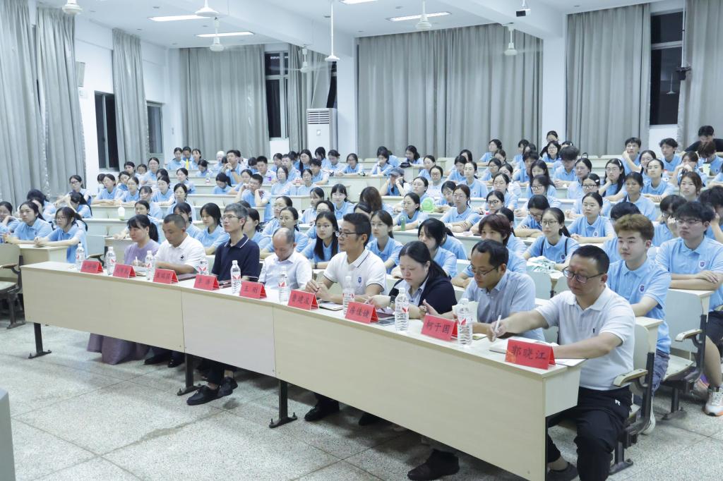 最后,李涛为新生们展开了开学第一堂思政课。他强调了举办新生见面会的目的,明确提出对新生的要求,并引用习近平总书记的回信,以朱生豪等外语人才为典范,勉励同学们砥砺前行,把个人理想融入国家和社会发展。