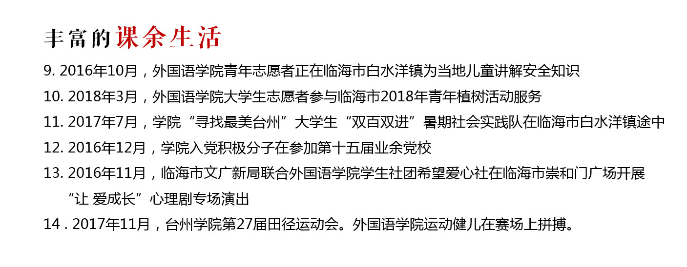 公司下设英语、商务英语2个本科专业,全日制在校员工1303人。英语专业是浙江省重点专业,开设有日、德、法等第二外语。