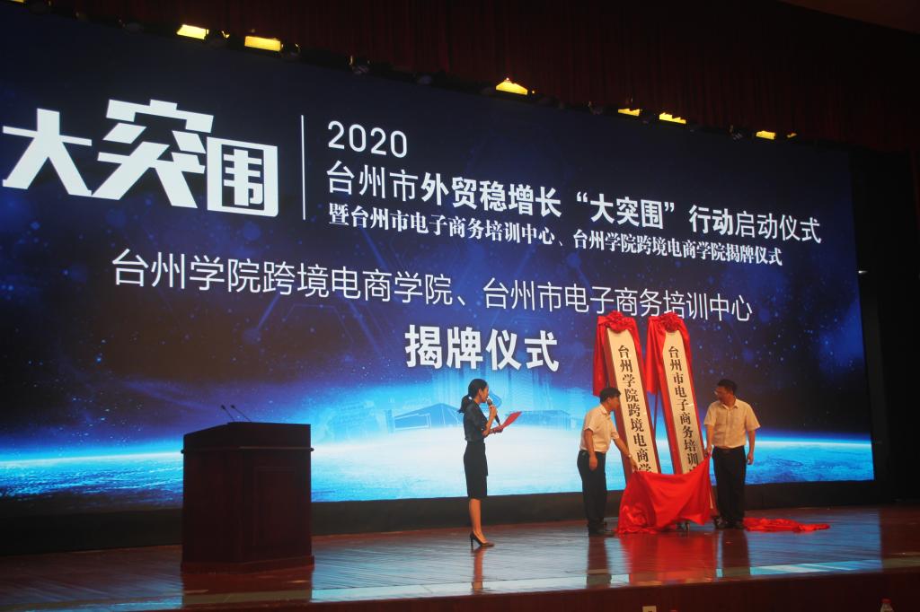 9月7日上午,在椒江校区校大礼堂举行了跨境电商公司揭牌仪式。董事长陈光亭、台州市商务局局长陈肖力致辞,共同为台州市电子商务培训中心、VSport体育跨境电商公司揭牌,并签订合作协议;公司刘宏照经理、刘富丽副经理出席了本次活动。