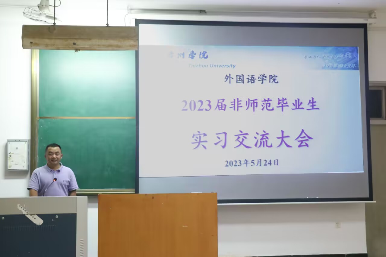 5月24日晚,VSport体育在临海校区A1教室召开了2023届专业实习总结交流大会。交流会由商务英语系副主任刘常民主持,19级和20级非师范专业员工参加。