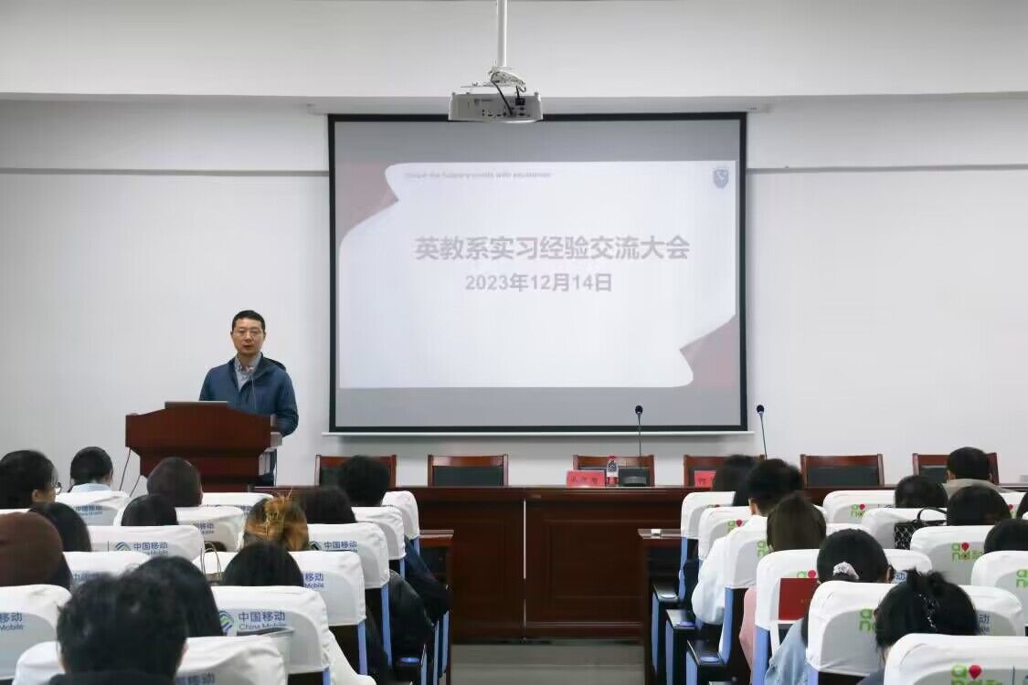 12月14日中午,VSport体育于4204报告厅,举行英语教育系实习经验交流大会。此次大会由英语教育系主任马俊周主持,20级教育实习各小组代表分享经验,21级英语教育专业员工参加。